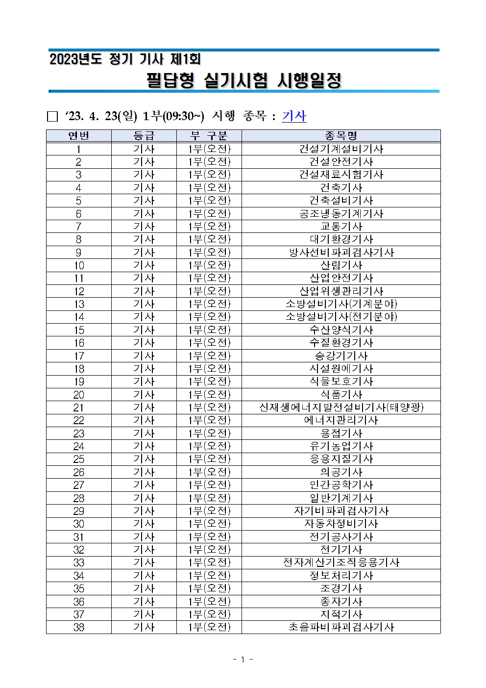 [8]2023년도 정기 기사 제1회 실기시험 필답형 시행일정.hwp