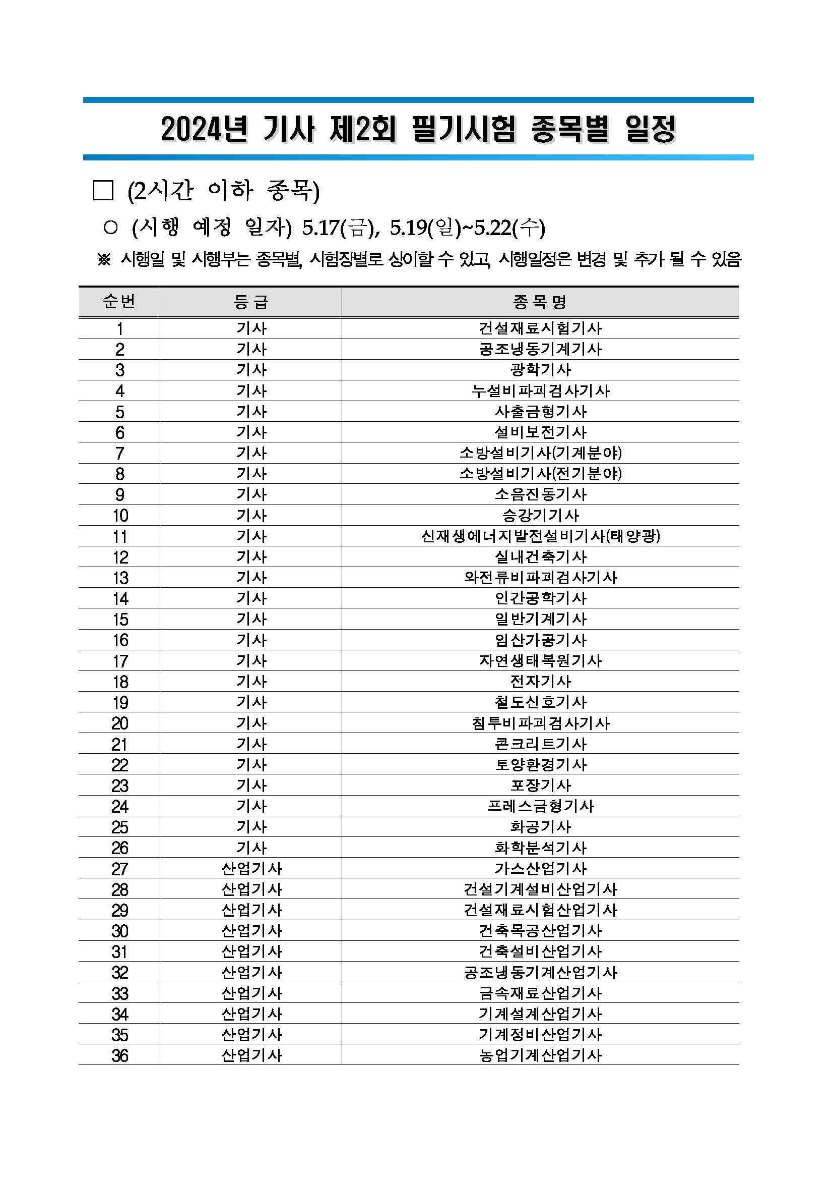 [7][붙임2] 2024년 기사 제2회 필기(CBT) 종목별 일정.pdf