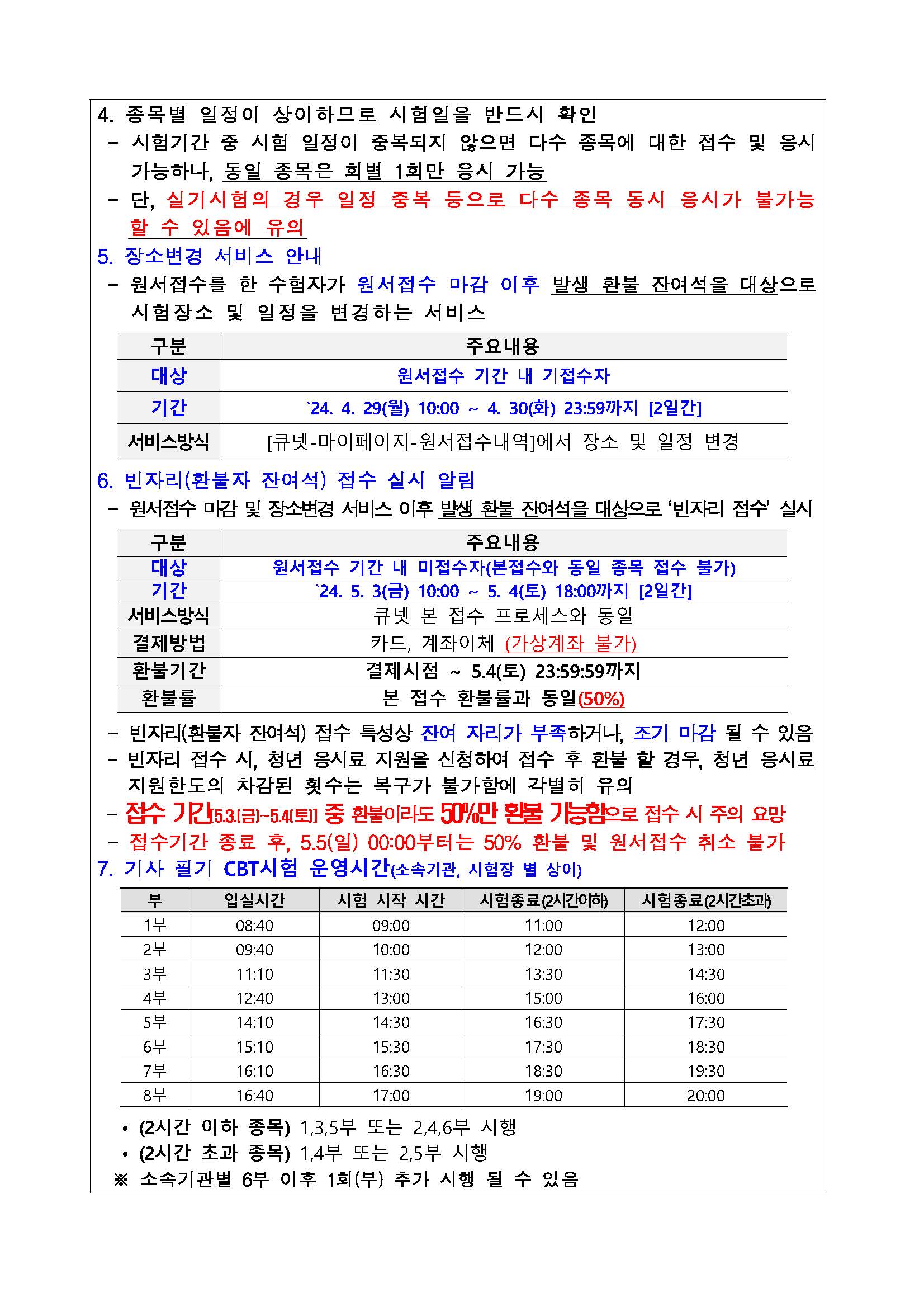 2024년도 기사 제2회 필기시험 원서접수 주요 안내사항