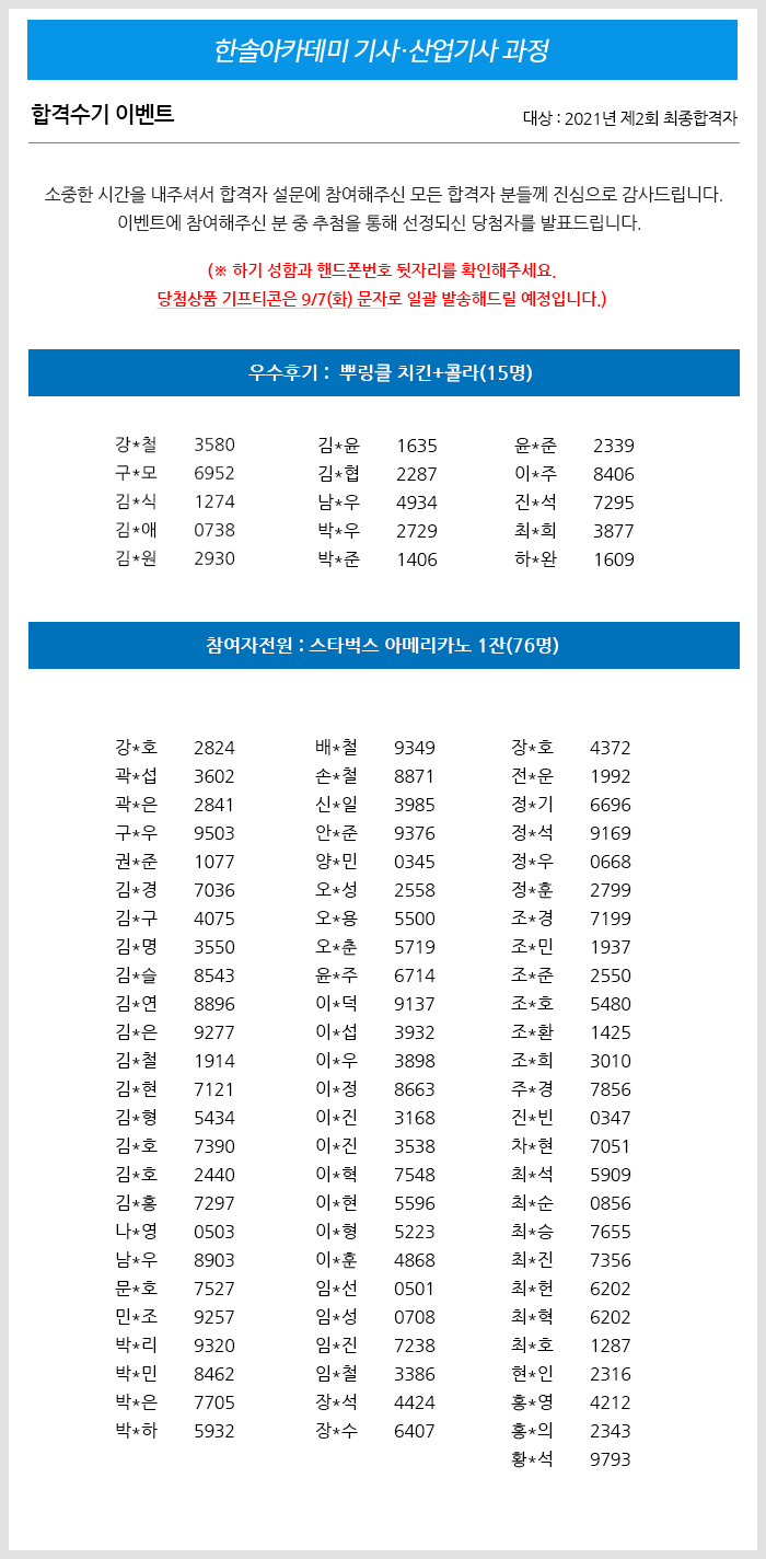 2021년 제2회 건축/전기/토목(산업)기사 합격수기 이벤트 당첨자 발표