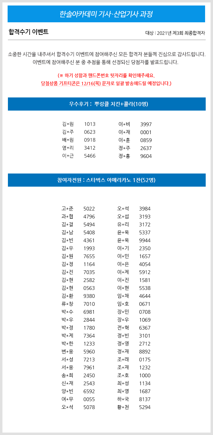 2021년 제3회 전기(산업)기사/토목기사 합격수기 이벤트 당첨자 발표