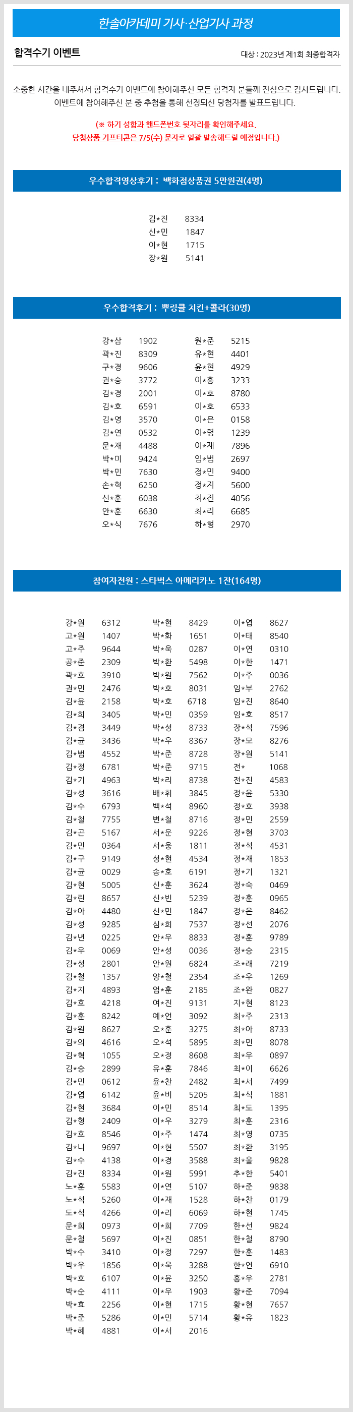 2023년 제1회 건축/전기/토목/건축설비/공조냉동기계(산업)기사 합격수기 이벤트 당첨자 발표