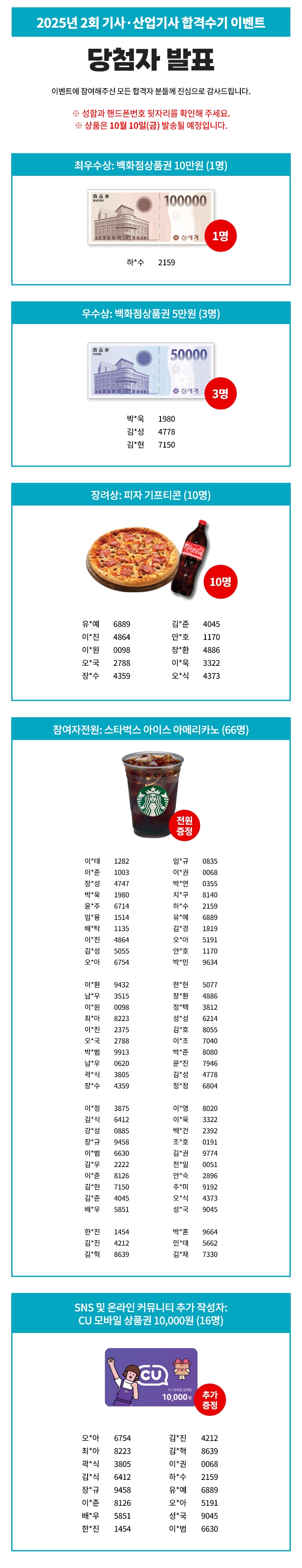 2025년 제2회 건축/전기/토목/건축설비/공조냉동기계(산업)기사 합격수기 이벤트 당첨자 발표